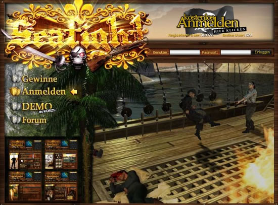 Piraten-Fans aufgepasst! Ein aufregendes und spannendes Piraten Online Spiel wartet auf Dich! Spiele in Echtzeit das Browser Spiel Seafight, hisse Deine Piratenflagge und werde zum berüchtigtsten Online Piraten der Weltmeere. Es erwarten Dich spektakuläre Seeschlachten und fürchterliche Seeungeheuer, die Du bezwingen musst. Dir stehen vielfältige Charaktere zur Verfügung und Du musst Dir eine Crew der größten Schurken zusammenstellen, um der gefürchtetste Piratenkapitän werden zu können. Deine Schlachten erlebst Du in nie da gewesener 3D-Grafik, verschiedene Level, umfangreiche Ausrüstungsmöglichkeiten und ein komplexes Schadensmodell sorgen für ein packendes Piraten-Feeling. Zu Beginn hast Du ein Standard-Schiff, das Du durch erbeutetes Gold aufrüsten kannst. Kaufe Dir Harpunen, um Seeungeheuer erlegen zu können, stärke den Rumpf Deines Schiffes und besorge Dir Kanonen, Segel und Beiboote. Kannst Du verschiedene Missionen für Dich entscheiden, wird sich Deine Beute in Deiner Goldtruhe vermehren und Dir Erfahrungspunkte einbringen. Dein Ziel ist es, der gefürchtetste Pirat aller Zeiten zu werden. Mit anderen Online-Piraten kannst Du per Chat kommunizieren, Seafight hat keine computergenerierten Gegner. Seafight – ein Muss für Fans der Piratenzeit!